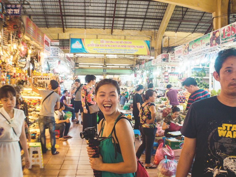 Další den jsme zkoumali město. Naší první stanicí byla Chợ Bến Thành, jedna z prvních tržnic v Saigonu. Hodně Vietnamců zde nabízelo své zboží. Vypadalo lákavě, ale byl to zatím náš první den a nechtěli jsme hned utrácet kapesné. Potom jsme šli do jiné, menší tržnice jménem Saigon Square. Většina zde prodávaných věcí jsou fake, ale sem tam se mohou najít i pravé originální kousky. Chce to hlavně dobře hledat. Vietnam je přece velký exportér oblečení a nějakým záhadným způsobem se zboží dostává ven z továrny. Prostě Asie. Já si ani tady nic nekoupila, jen šálu, kterou jsem stejně později ztratila :-D.