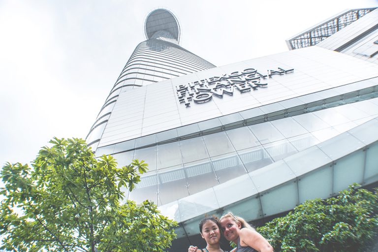 Poté jsme navštívili nejvyšší budovu Saigonu a druhou nejvyšší budovu celého Vietnamu, Bitexco Financial Tower (68 pater). Vtipné je, že když chcete jít na prohlídku do nejvyššího patra, musíte platit 200 Kč. Nám se moc nechtělo platit takovou částku, tak jsme šli do kavárny, která leží v 50. patře a tam jsme si objednali kafe za 150 Kč. Zde jsme si nejen užili výhled na celé město, ale ještě k tomu dostali nápoj. Jak se tam dostat? Koukněte na tohle video.