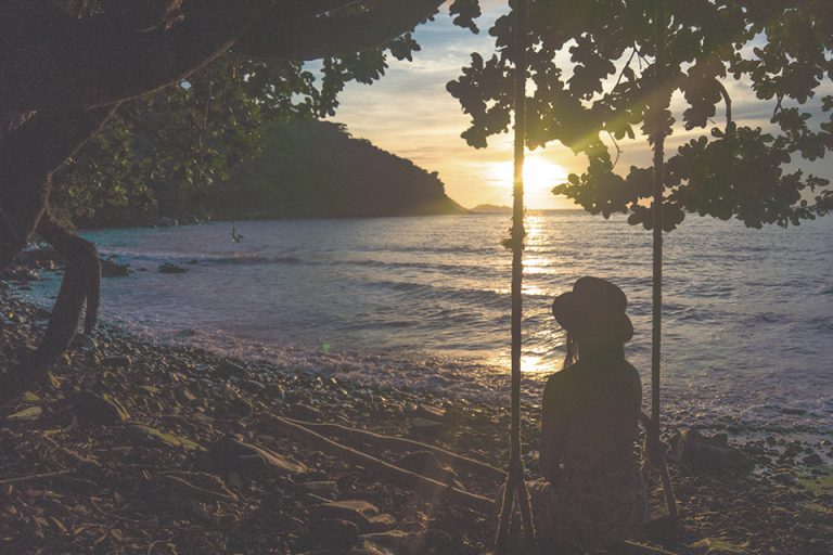 Po obědě jsme se vraceli k hotelu, abychom si pronajali skútr. Začal náš první den se skútrem. Jak si pronajmout skútr ZDE. Dan se to rychle naučil a já to chtěla taky zkusit, ale jelikož nemám ani v Česku řidičák, tak jsem to nechtěla riskovat. V hotelu nám doporučili, abychom jeli na pláž Ông Dũng, že je tam krásný západ slunce. Měli pravdu. Bylo to překrásné a člověk jako já si to mohl dopřát na houpačce u pláže. Jediná nevýhoda té pláže byla ta, že je to kamínková pláž, dost nepříjemná na chození. Předtím, než jsme se tam dostali, jsme museli jít pro povolení na úřad. Na pláži jsme to předali hlídači, který nás upozorňoval hlavně na opice, které byly všude na stromech. Prý, že hodně kradou, abychom si dávali pozor na svoje věci.