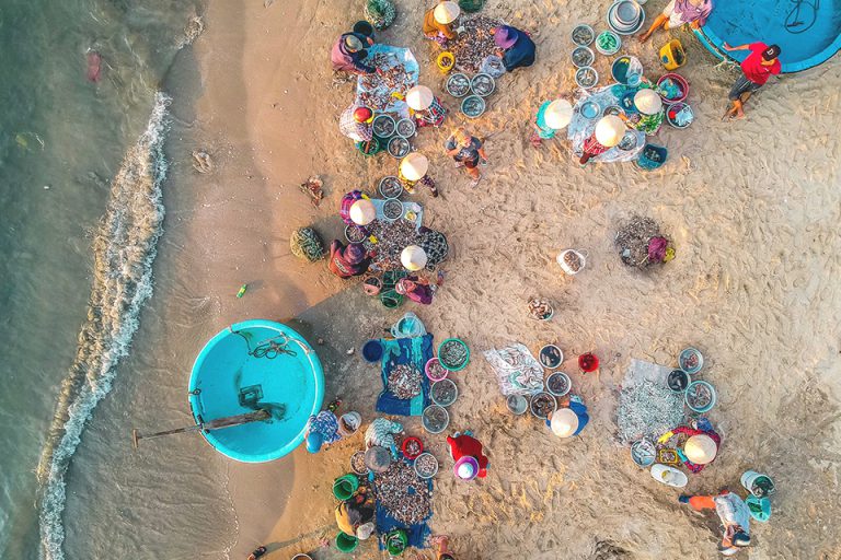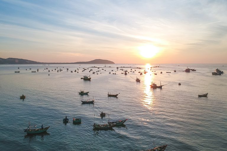 Další den jsme chtěli mít s Longim dobré záběry z fishing village. Bylo nám řečeno, že jestli se chceme dívat, jak lidi rybaří, tak nejlépe kolem 4 hodiny ráno. A ano, zvládli jsme to. Dostali jsme se tam kolem 5 hodiny ráno. Zatím jsme neviděli žádné rybáře, ale ten zápach z ryb už byl cítit na míle daleko. Celé pobřeží bylo plné lidí, kteří obchodovali s mořskými plody. Dá se říci, že každé ráno tam mají rybářskou tržnici, odkud zároveň exportují mořské živočichy po celé zemi. Highlight rána byl pro mě i východ slunce. Takové výhledy na moře a slunce v Česku jen tak neuvidím.